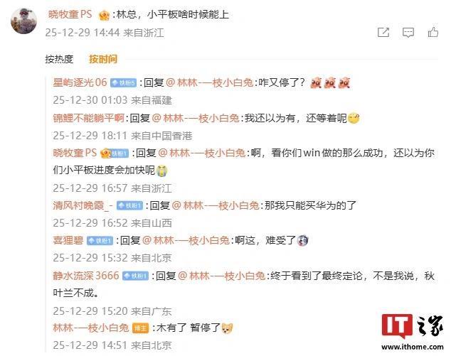 然而项目的突然暂停,让众多网友倍感失落。社交平台上,网友纷纷留言调侃“我还以为有,还等着呢”,更有用户直言惋惜:“大平板塞不进包,手机屏幕又太小,中间的黄金尺寸就这么没了?”,道出了部分消费者对小尺寸便携平板的刚性需求。